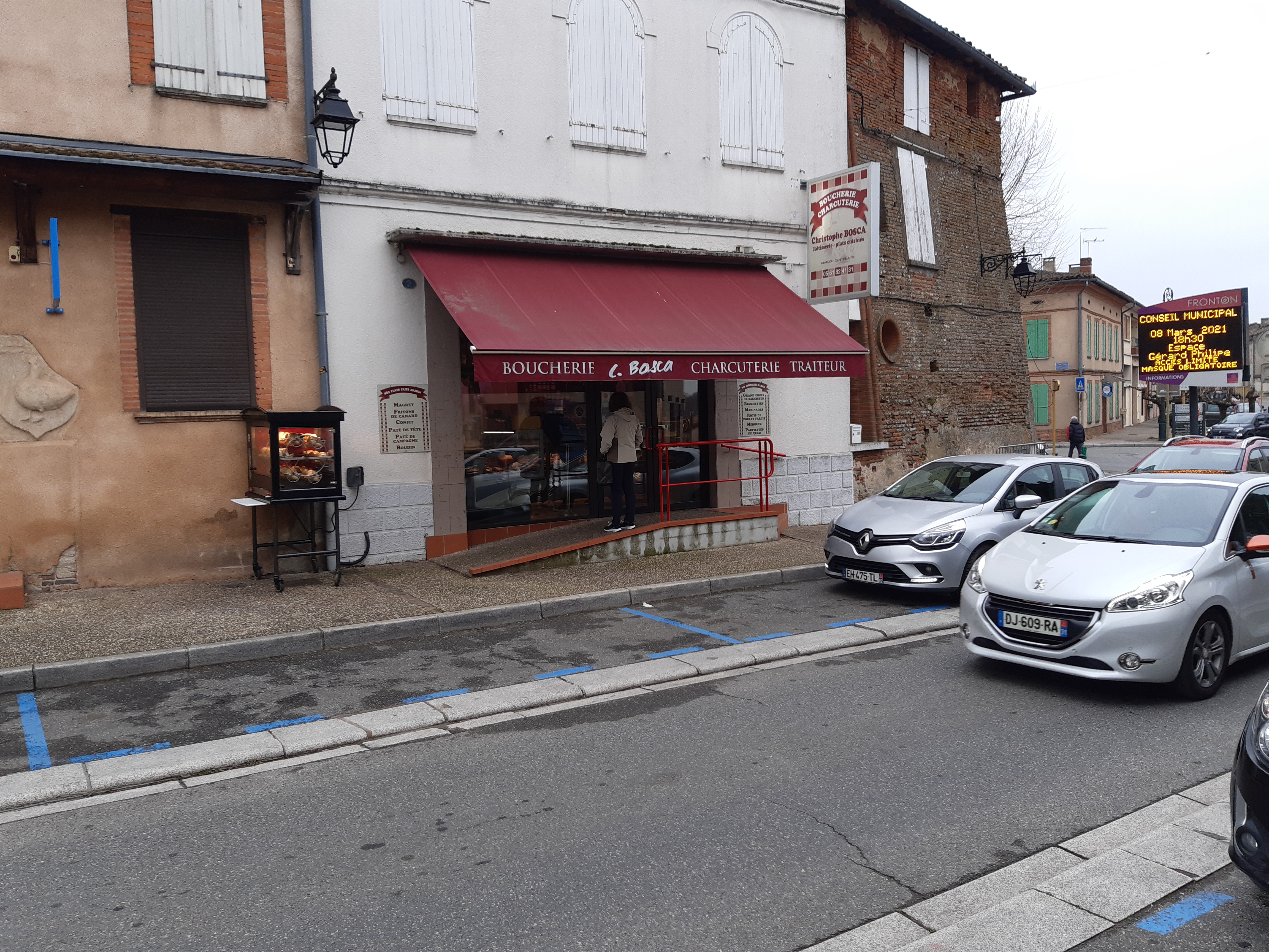 Situé en plein centre de Fronton, cet établissement propose des places de parking de proximité. Accesibilité pour les personnes à mobilité réduite et/ou en fauteuil roulant, l'accueil est parfait et agréable. Le choix est incroyable, tout est merveilleusement bon et d'un rapport qualité prix exceptionnel. Les portions (brochettes, plats cuisinées) sont très correctes. Je conseille fortement ce commerce. Bravo à toute l'équipe
